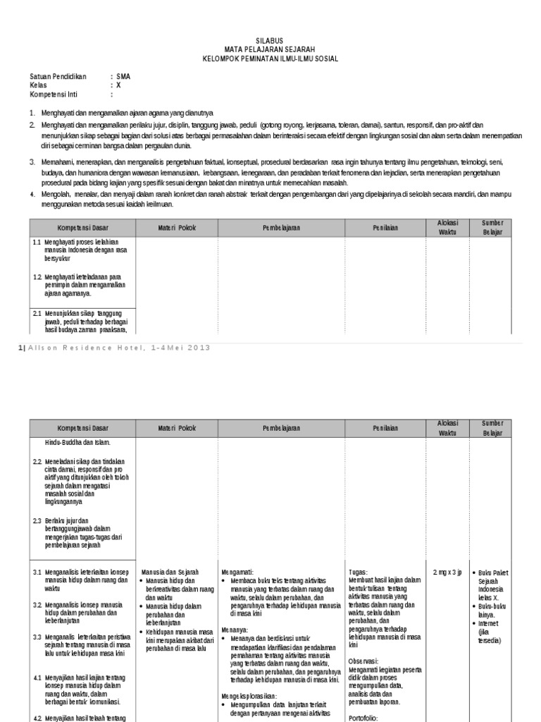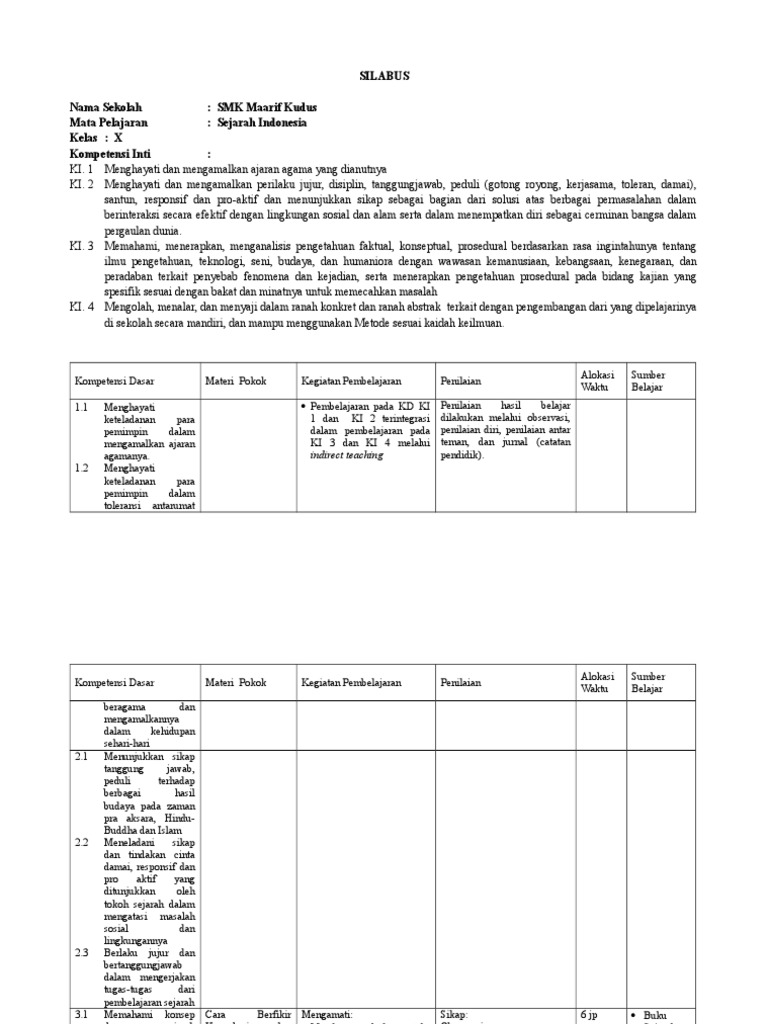 Berikut ini admin akan membagikan silabus sejarah indonesia sma kelas x secara lengkap. Silabus sejarah indonesia wajib allson 1 4 mei 2013 (revisi) doc) peminatan kelas x docx anju nofarof smk k13 sma/smk revisi terbaru. Semua bidang keahlian kelas /semester : Download silabus mapel sejarah indonesia kelas x (10) sma/ma kurikulum 2013 revisi tahun 2021. Perangkat sma kelas x, xi dan xii lengkap semua mata pelajaran terintegrasi kurikulum 2013 terbaru dan terlengkap.